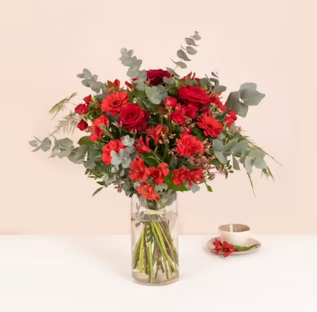 Un’esplosione di emozioni racchiusa in un bouquet che parla il linguaggio dell’amore. Le rose rosse, simbolo eterno di passione, si intrecciano con vivaci gerbere e delicate alstroemerie, avvolte dal verde elegante dell’eucalipto. Ogni fiore è una carezza, ogni sfumatura un battito del cuore. Passione Infinita è il dono perfetto per dire “sei la mia unica ragione”, un abbraccio floreale che racconta i sentimenti più profondi senza bisogno di parole.